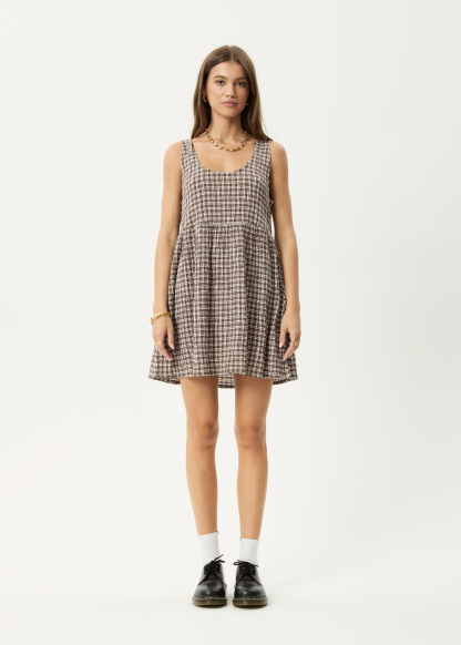 AFENDS Womens Jesse - Seersucker Mini Dress - Coffee Check