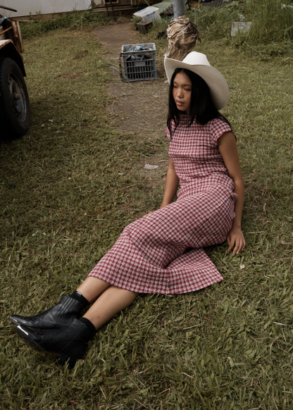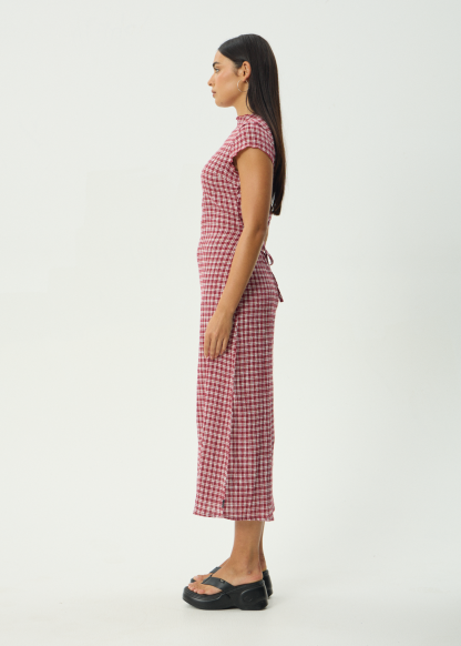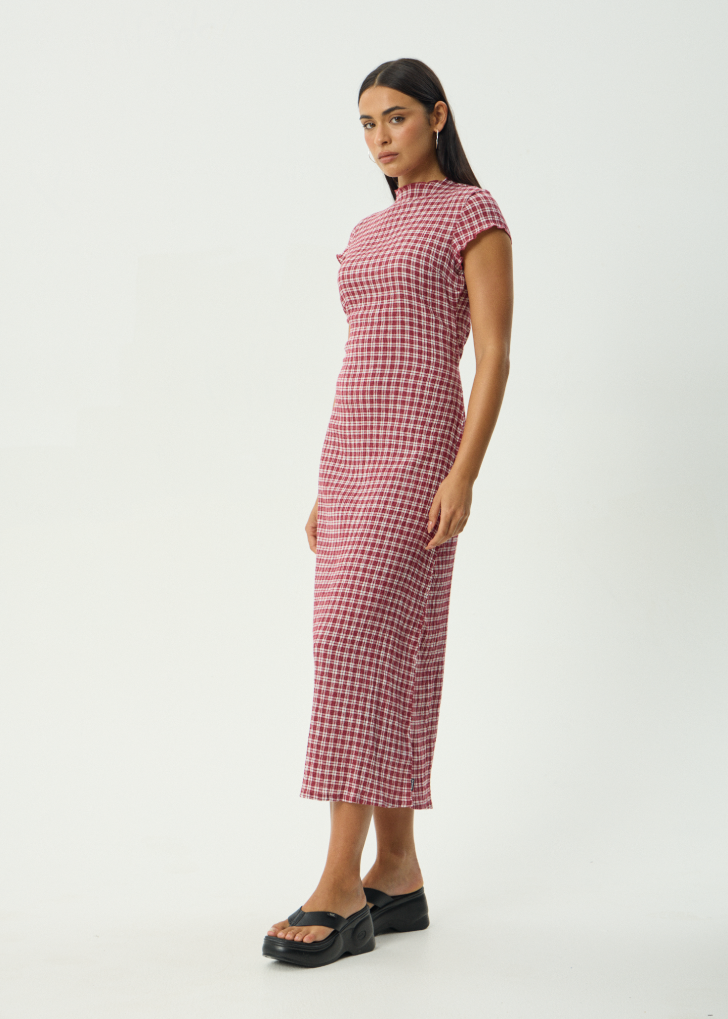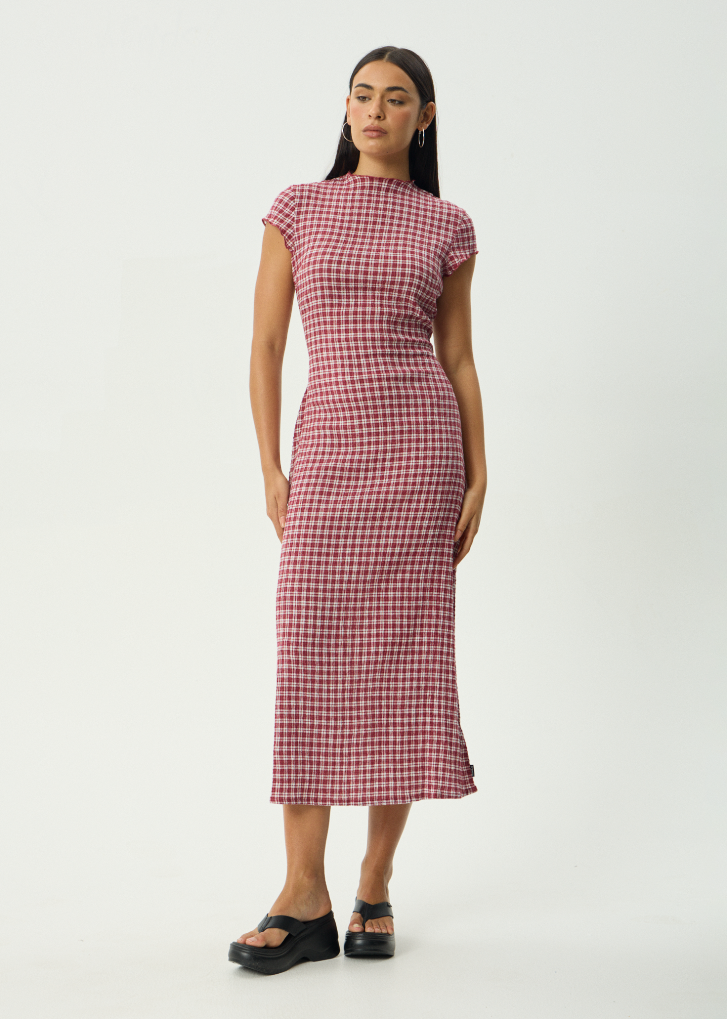AFENDS Womens Elodie - Seersucker Midi Dress - Burgundy Check