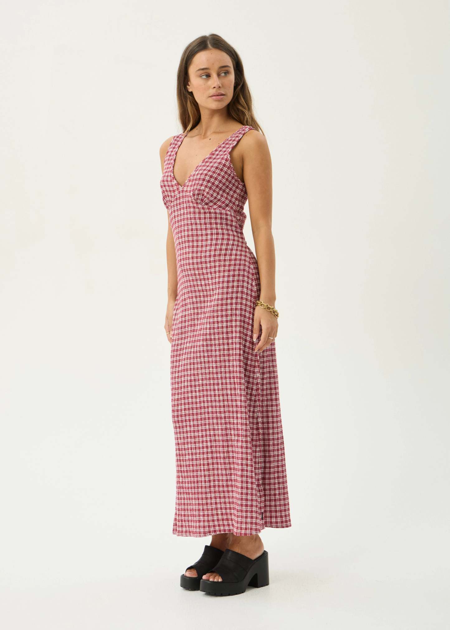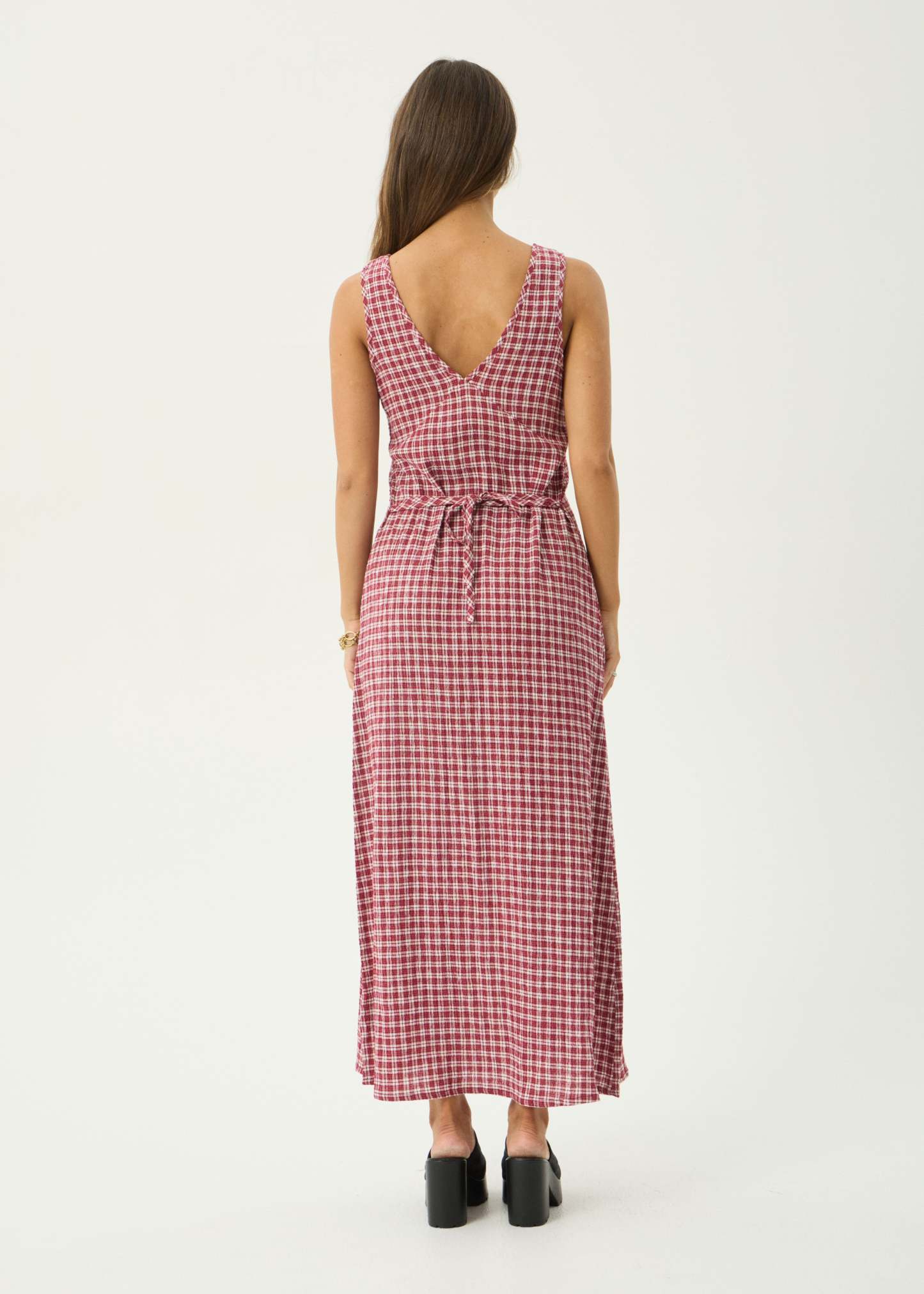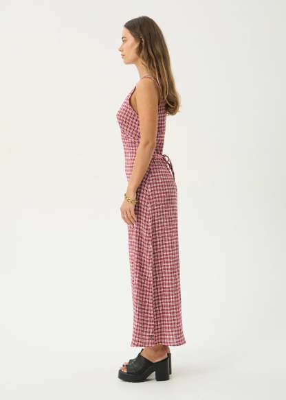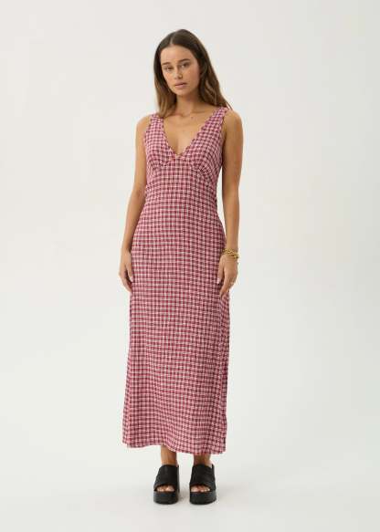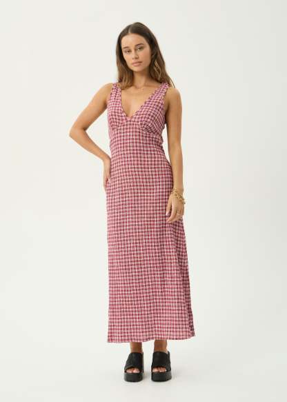 AFENDS Womens Base Tully - Seersucker Maxi Dress - Burgundy Check