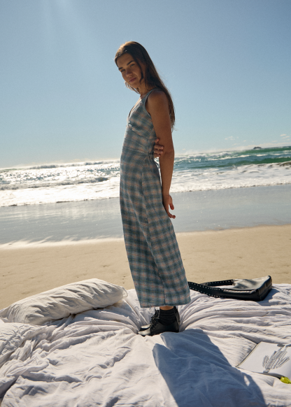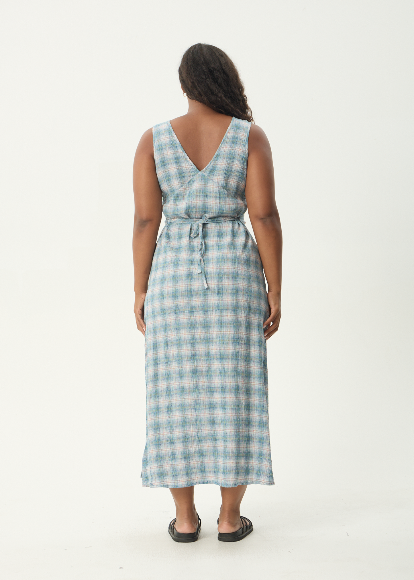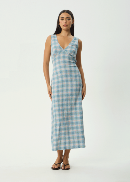 AFENDS Womens Position Tully - Seersucker Maxi Dress - Lake Check