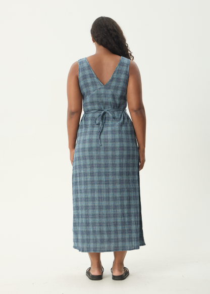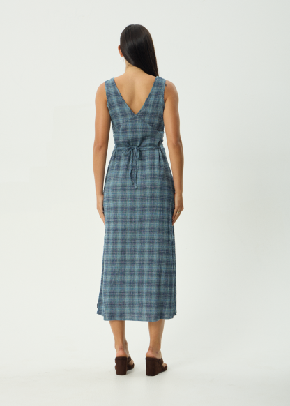 AFENDS Womens Position Tully - Seersucker Check Maxi Dress - Navy Check