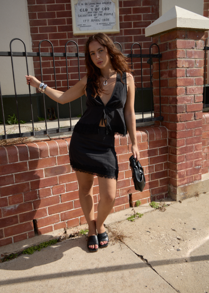 The Sinclair Cupro Collection is designed with a soft cupro and viscose blend that feels smooth and cool against the skin, with a lightweight drape and subtle matte sheen. Made using regenerated cotton waste, cupro offers a more considered alternative to traditional fibres. Finished in all black with tonal Chantilly lace trims for a subtle touch of feminine charm.