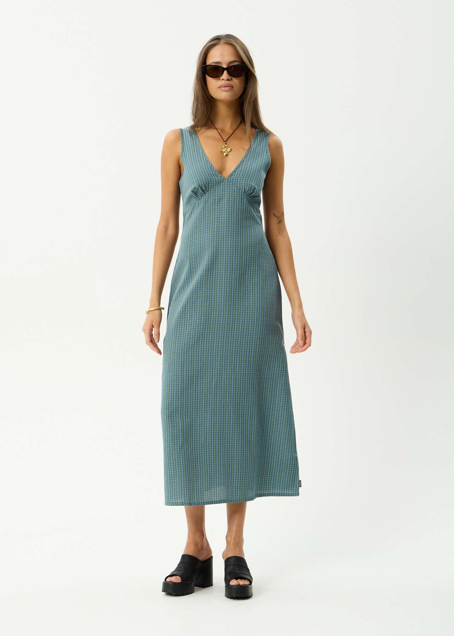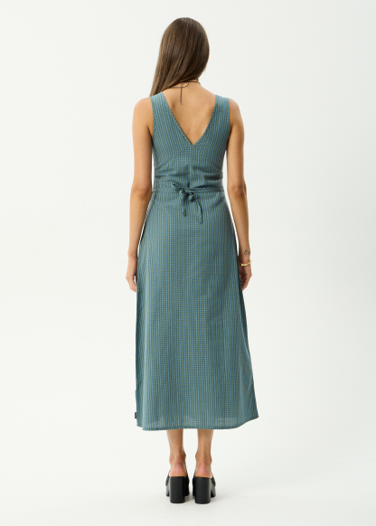 AFENDS Womens Voyager - Maxi Dress - Deep Olive Check